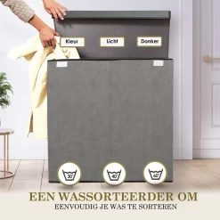 Merkloos Wasmand Met 2 Vakken, Grote Wassorteerder Met Uitschuifbare Waszakken, Bruin En Zwart