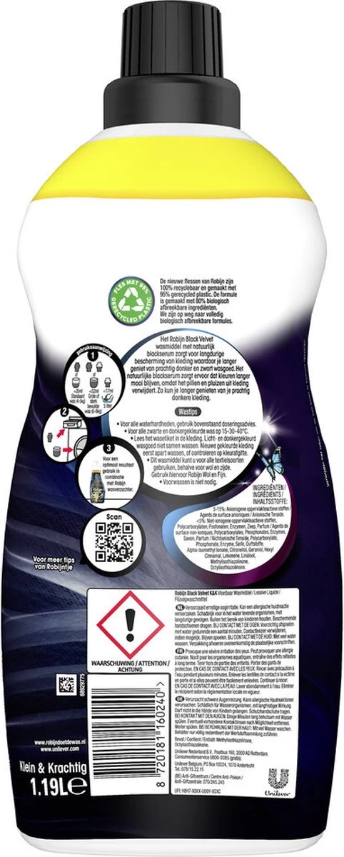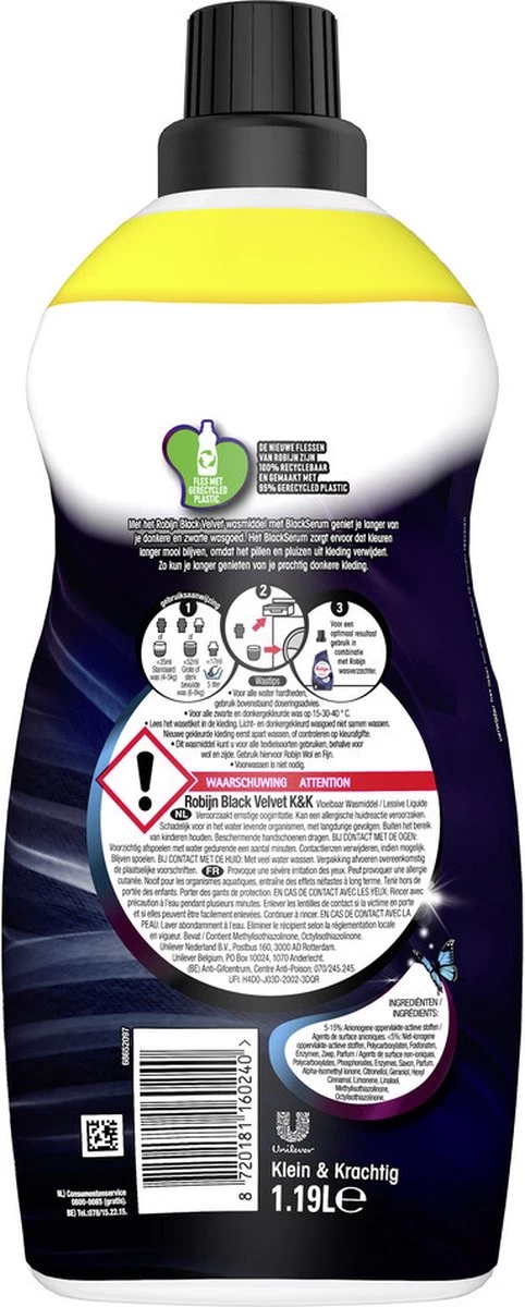 - Robijn Black Velvet Vloeibaar wasmiddel houdt zwarte kleding lang mooi