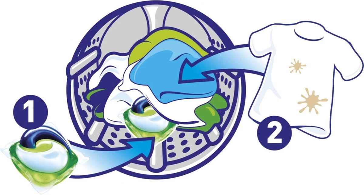 Ariel All-in-1 biedt een buitengewone reiniging in 1 kleine pod. Het unieke ontwerp van de Ariel All-in-1 Pods + Actieve Geurbestrijding wasmiddelcapsules met verschillende compartimenten houdt de ingrediënten stabiel en gescheiden totdat ze de was bereiken, waar ze supergeconcentreerde reinigingskracht geven. De innovatieve laag van de Ariel wastabletten lost bij contact met water volledig op en geeft hun krachtige reinigingskracht vrij die een heleboel soorten vlekken bestrijdt en je net de juiste hoeveelheid van het beste vloeibare wasmiddel van Ariel geeft. Gebruik samen met Lenor wasverzachters en Unstoppables, een geurbooster voor de was, voor een extra boost van zachtheid en frisheid. Let op. Dit product kan schadelijk zijn en ernstige verwondingen veroorzaken. Ariel pods buiten het bereik van kinderen houden. Bezoek keepcapsfromkids.eu voor meer informatie. 1 pod voor 1 wasbeurt. Plaats de pod in de trommel en leg de kleren er vervolgens bovenop om het product effectief te gebruiken.