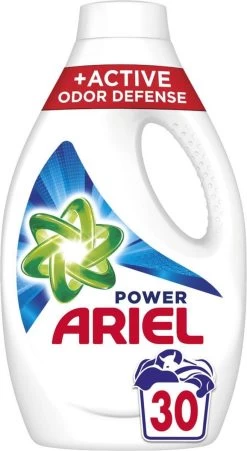 Ariel +Actieve Geurbestrijding vloeibaar wasmiddel geeft je de uitzonderlijke schoonheid van Ariel terwijl het hardnekkige vlekken en geuren bestrijdt. Hij is speciaal ontworpen met een technologie die geurtjes tegengaat en biedt 2x langere anti-geurwerking (in vergelijking met Ariel Color vloeibaar in de opslag). Ariel +Actieve Geurbestrijding vloeibaar wasmiddel biedt ook onberispelijke resultaten bij koudere temperaturen. Daarnaast wordt Ariel vloeibaar wasmiddel geleverd in een recyclebare verpakking. Je kunt Ariel +Actieve Geurbestrijding vloeibaar wasmiddel ook gebruiken om vlekken voor te behandelen met de groene dop. Daarna stop je je kleding in de wasmachine. Voor het beste resultaat leg je de met wasmiddel gevulde doseerdop in de trommel van je wasmachine. Om het milieu te beschermen krijgen niet alle flessen een doseerdop. Je kunt de dop gratis krijgen via de website van ariel.info