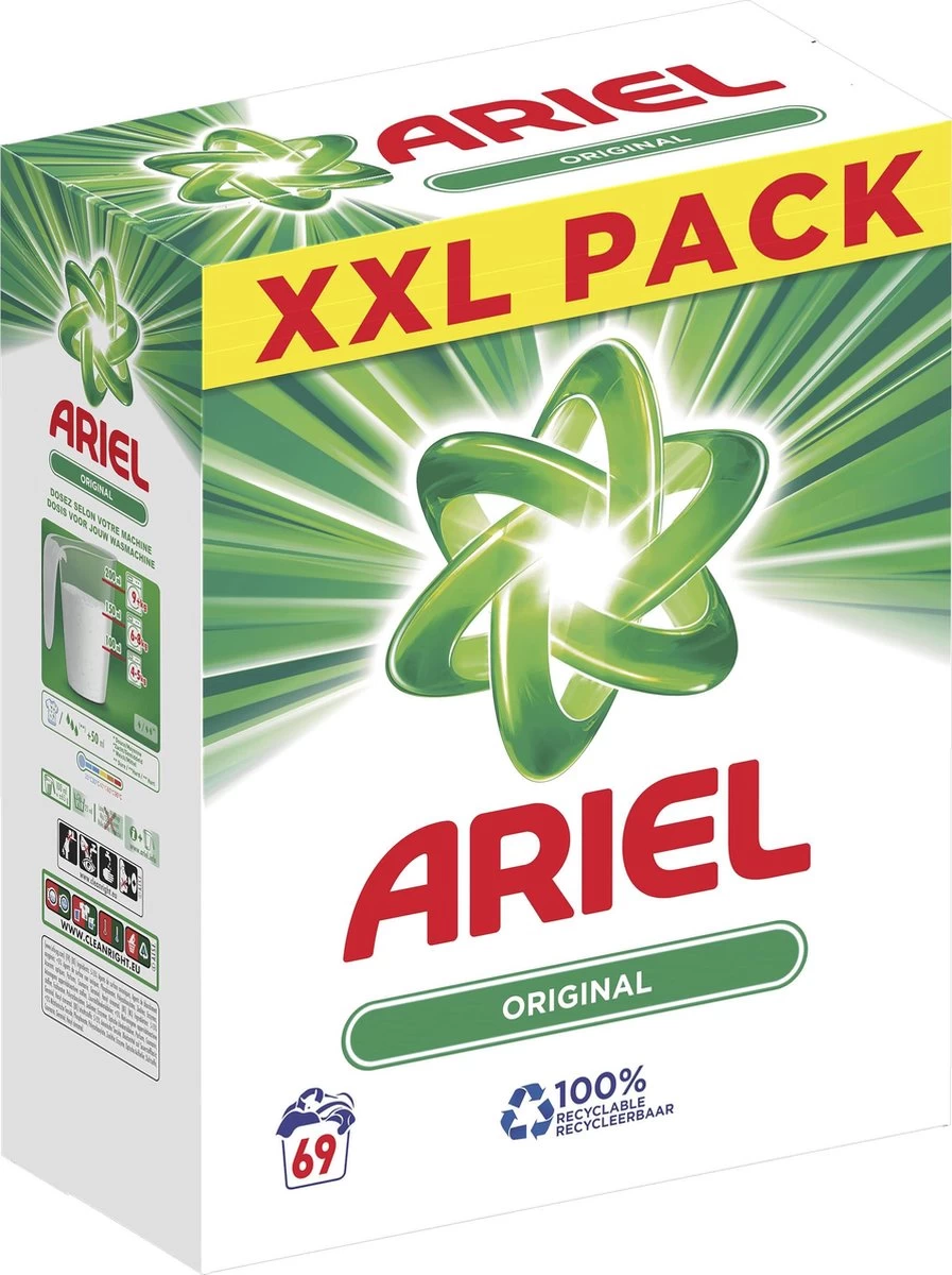 Wanneer je er goed uitziet en goed ruikt, dan voel je je ook goed. En dat begint allemaal bij het vinden van de beste wasbeurt voor je kleding. Hier komt het Original waspoeder van Ariel in beeld. Verwijdert hardnekkige vlekken door diep in de vezels te reinigen en voorkomt dat ze intrekken. Het verwijdert zelfs de vlekken die nare geurtjes veroorzaken, zoals zweet en lichaamsgeuren, en zorgt dat je kleren heerlijk schoon ruiken en er ook zo uitzien. Werkt al bij 30 graden. Dus als je je witte was als nieuw wilt houden, gebruik je wasmiddel van Ariel. Was je kleding keer op keer met vertrouwen. Ariel Original is ook beschikbaar als vloeibaar wasmiddel en in pods.