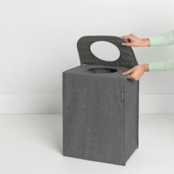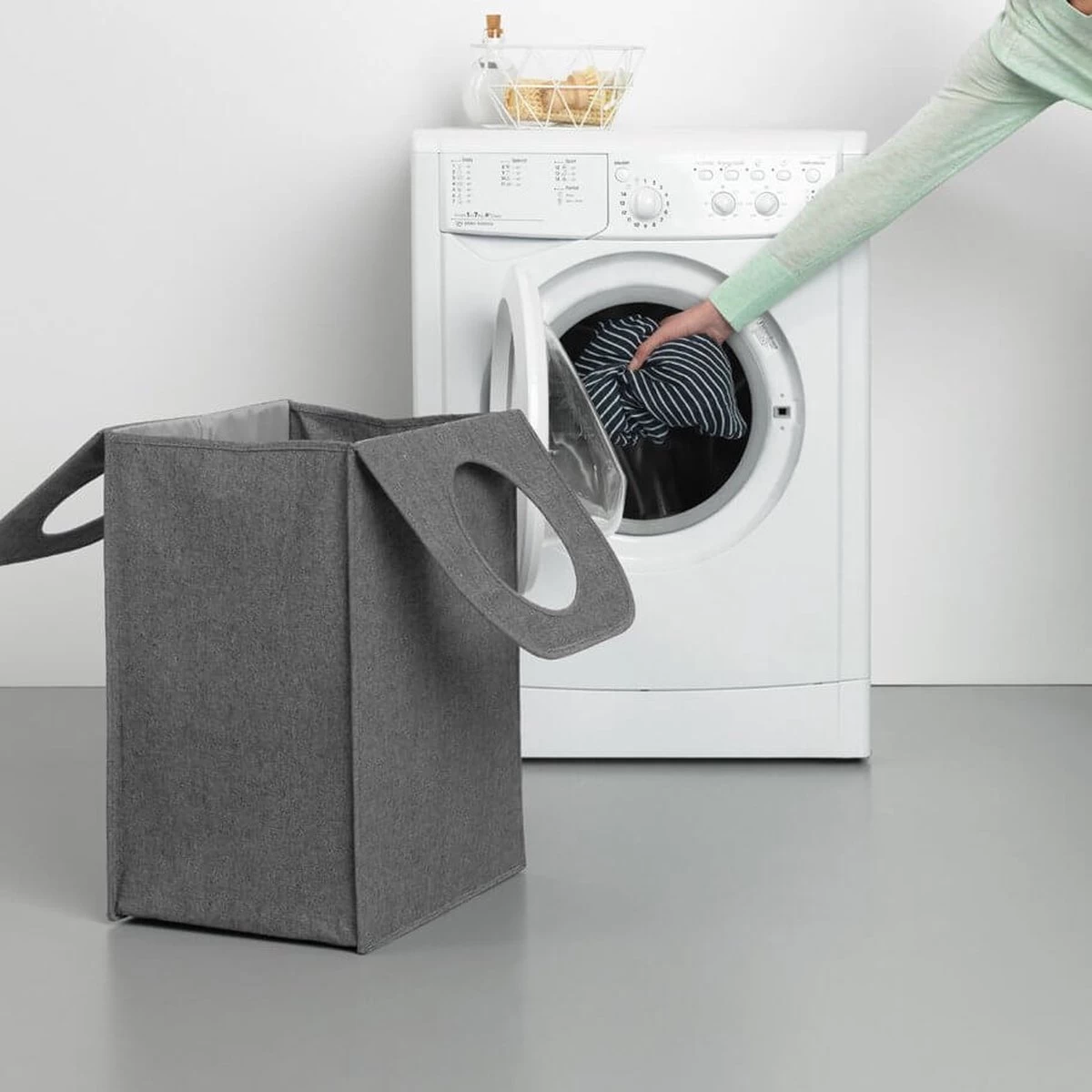 Een kind kan de was doen met de Brabantia Wasmand – 55 l – Pepper Black. Deze ingenieuze open-dicht wastas maakt de wasdag een makkie. De wastas is gemakkelijk te dragen, heeft een grote capaciteit en een handige inwerpopening. Met de magnetische draagbeugels gesloten, valt de vuile was eenvoudig door de ‘Quick-drop’ opening in de tas. Klap de bovenkant op wasdag open, en de tas is klaar voor gebruik!