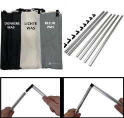 De wasmand heeft opvouwbare- en afneembare waszakken, waardoor u de was vanuit de waszakken snel in de wasmachine kunt zonder kleding te laten vallen. Oftewel met deze Wassorteerder bespaart u tijd en frustraties.