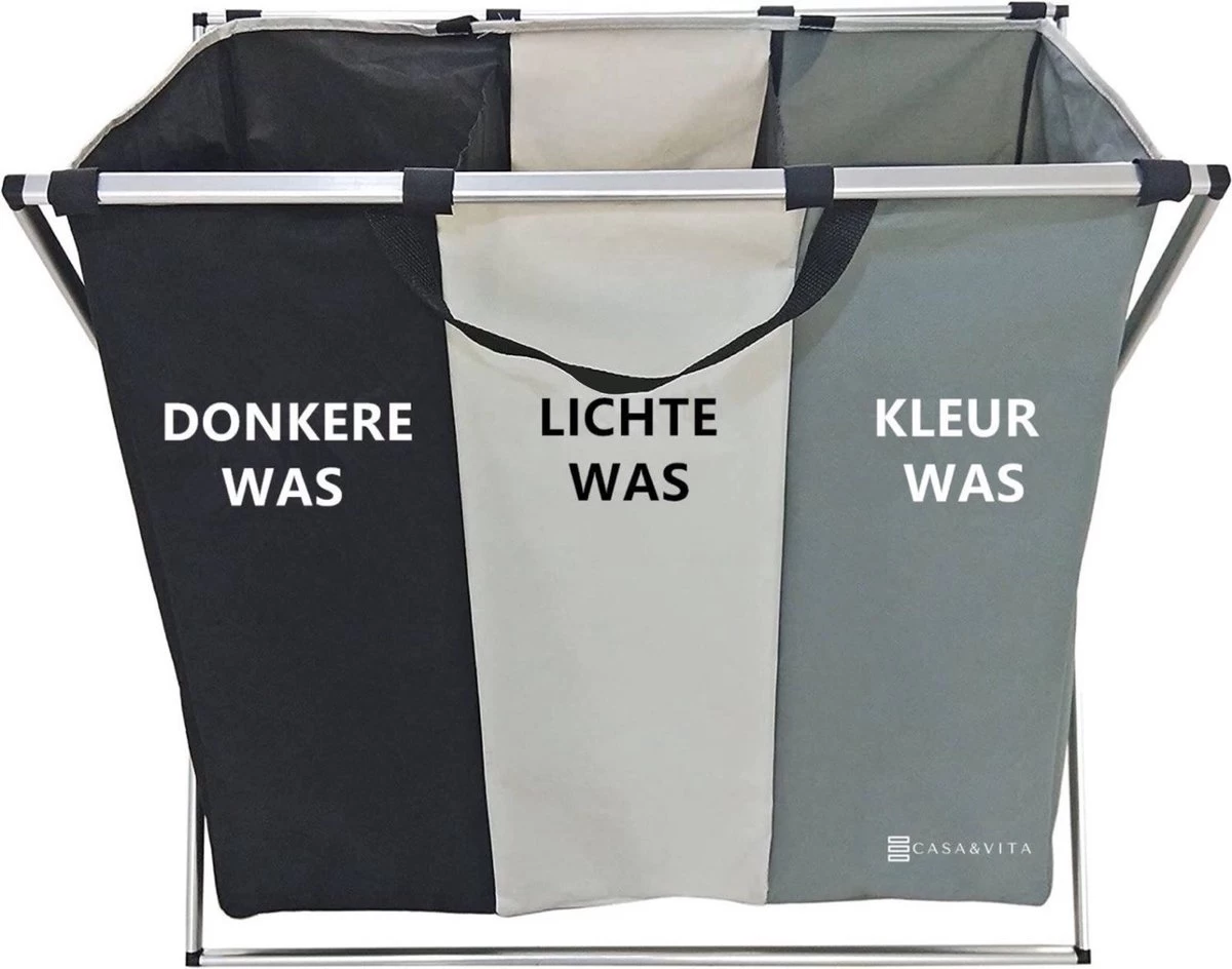 Bent u die ongesorteerde stapels wasgoed door uw hele huis ook beu? Dan is de 3 vakkige wasmand van Casa & Vita de oplossing voor u! Hij maakt het voorsorteren van je wasgoed zeer eenvoudig, door onderscheid te maken in drie categorieën: donker, licht en kleur.