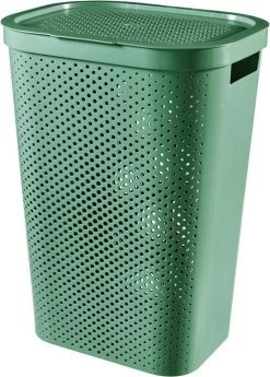 - Curver Infinity Dots Wasmand met deksel – 60L – 2 stuks – Groen – Recycled Kunststof
