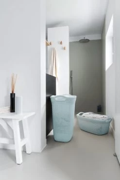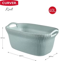 - Curver Knit Wasmand met deksel 57L + Wasmand 40L – Misty Blue