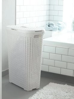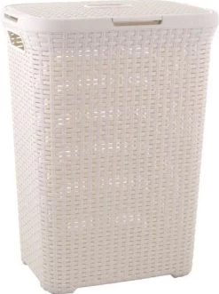 Curver Style Wasbox 40L heeft de look en uitstraling van riet, maar heeft de voordelen van kunststof. Door het vlechtwerk kan de box optimale luchten. Het scharnierpunt van het deksel kan zowel aan de korte als aan de lange kant gemonteerd kan worden, maar het deksel kan er eventueel ook los opgelegd worden. Dankzij zijn speciale greep is het extra gemakkelijk om hem te openen.