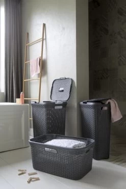 Er zijn altijd van die klusjes waar je niet onder uit komt. De was is er een van. Voor je het weet stapelt het zich op, zelfs wanneer je dacht dat je het net had weggewerkt. Curver helpt je graag om het gemakkelijker te maken. En dat niet alleen: als het even kan ook nog een beetje mooier. De wasmanden van Curver Style geven uitstraling aan je badkamer, bijkeuken of laundry. Zachte en comfortabele handgrepen helpen je om de was eenvoudig te kunnen dragen; misschien zelfs met één hand. De wasmanden van Curver Style zijn verkrijgbaar in diverse kleuren en maten. Van 40 liter tot 60 liter, en van wasbox tot wasmand. De kleuren zijn prettig neutraal, zodat ze gegarandeerd in elk badkamerinterieur passen. Curver biedt een moderne lijn wasmanden en wasboxen. Klassieke ontwerpen van de kwaliteit waar Curver zo befaamd om is. Zo worden zelfs de meest alledaagse dingen een beetje leuker!