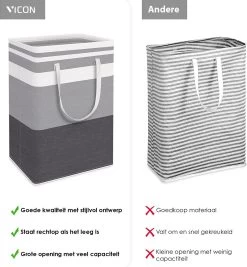 De wasmand meet 40 cm x 30 cm x 62 cm (L x B x H) met 75L grote capaciteit. Deze wasmand kan kleren, kussens, babyspeelgoed, enz. bevatten. Perfecte keuze voor campus slaapzalen of familie leven.
