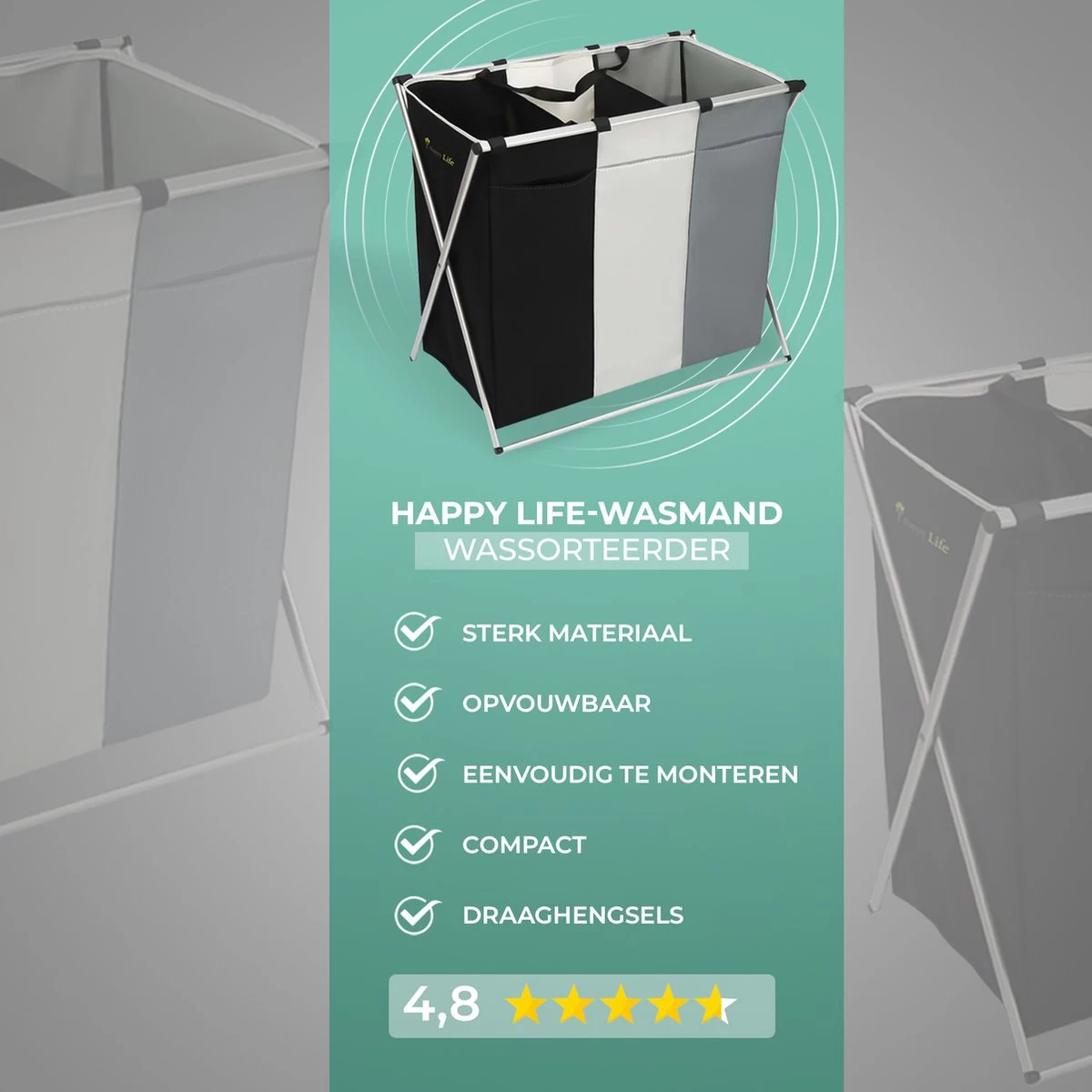 De Happy Life wasmand met drie vakken is niet alleen functioneel en duurzaam, maar is ook nog eens trendy en stijlvol.