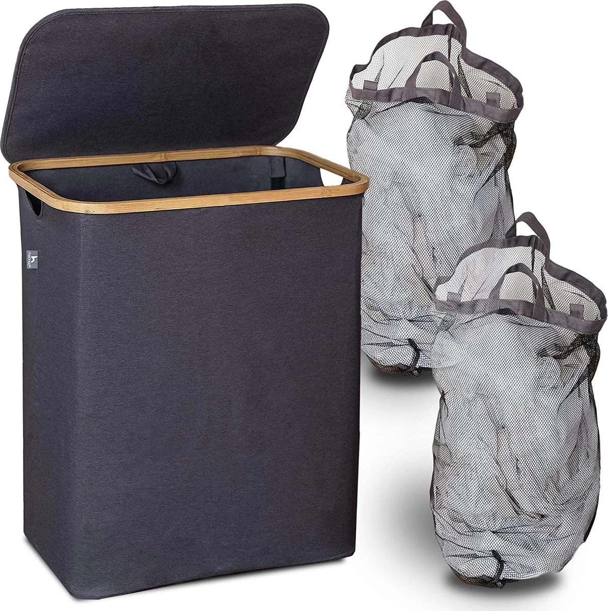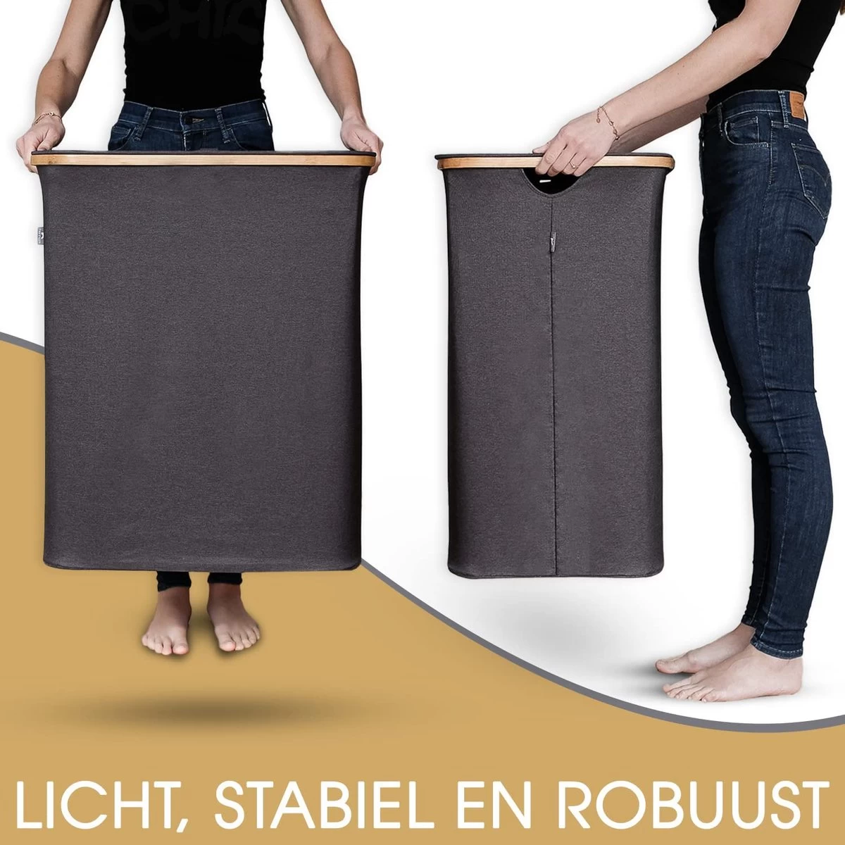 - Deze wasmand met 2 vakken met een inhoud van 140 liter helpt je vuile was discreet en geurvrij afsluitbaar op te bergen. Perfecte multifunctionele opbergmand voor vuile kleding.