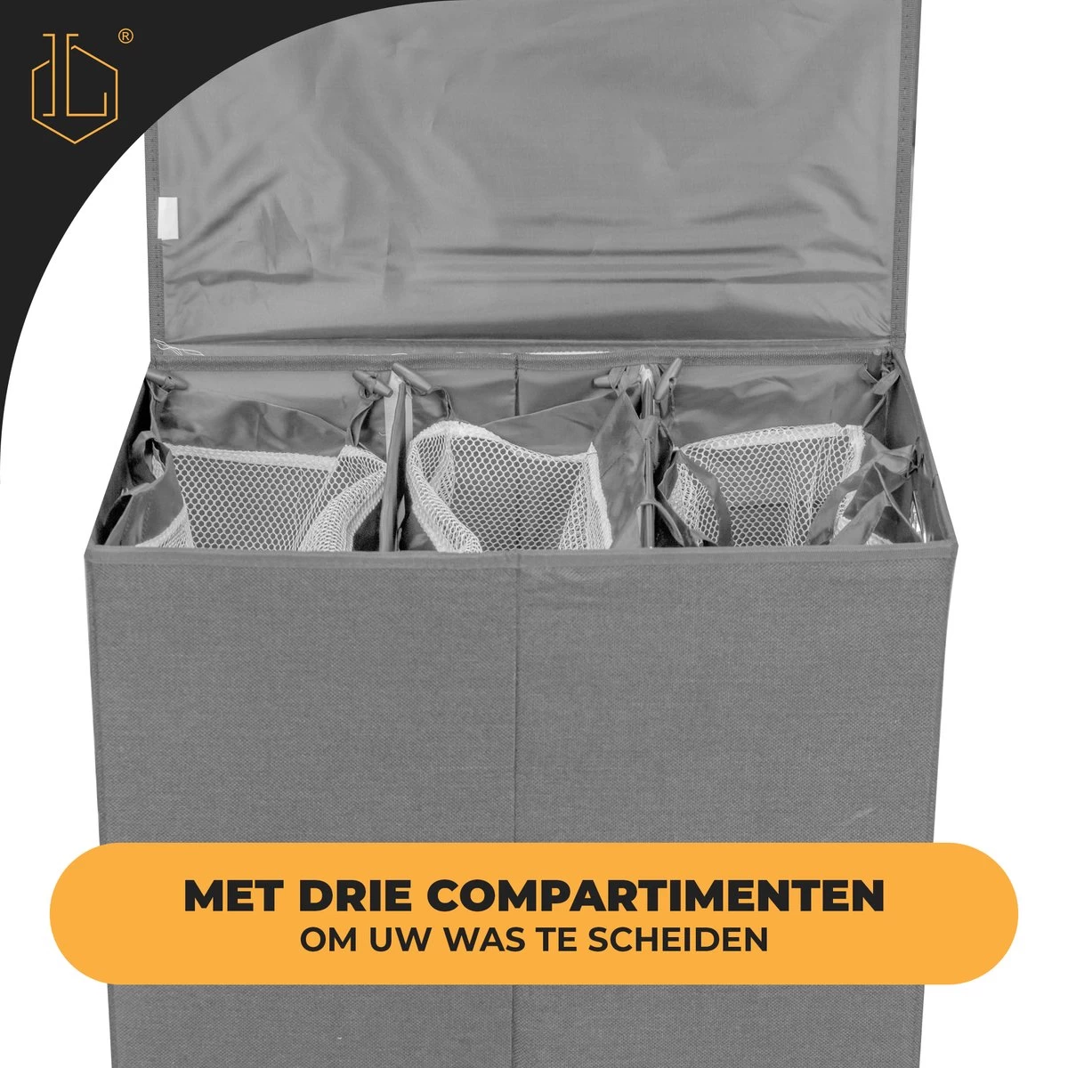 3 ruime, apart verwijderbare zakken van elk 40 liter: sorteer je was en zie meteen of je genoeg vuile was hebt om een witte, donkere of gekleurde was te laten draaien.
