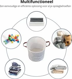 Multifunctioneel – Met een grote capaciteit van 72 liter, biedt deze mand voldoende ruimte om al je spullen in op te bergen en hoef je nooit meer opzoek naar rondslingerende spullen in je huis. Ideaal voor het opbergen van vuile was, speelgoed of om het huis schoon en netjes te houden van beddengoed. Bovendien is hij voorzien van een handige trekkoord, waardoor je badkamer of slaapkamer er altijd netjes uitziet!
