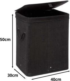 Nooit meer vuile was op de grond van de badkamer of op de slaapkamer met deze Zwarte Wasmand, die gemaakt is van bamboe. De wasmand heeft een inhoud van 60 liter, dankzij het ontwerp van deze wasmand past hij in elke hoek van de slaapkamer of badkamer.