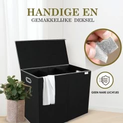 Dit product staat ook wel bekend als de wassorteerder, omdat deze het sorteren van de was vereenvoudigd. In ieder vak van de wasmand kunt je bijvoorbeeld een bepaalde kleur was kwijt, of selecteer je de was op temperatuur van de wasbeurt. De mogelijkheden zijn eindeloos. Daarnaast is de deksel afsluitbaar door middel van klittenband bevestiging. Dus geen nare luchtjes in je huis. De wasmand heeft ingebouwde handvatten waardoor je deze makkelijk kunt verplaatsen. Dat is allemaal wel zo makkelijk en fijn.