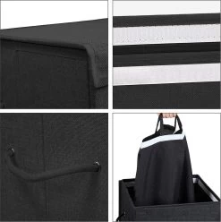 Deze wasmand heeft een capaciteit van 85L en heeft 2 katoenen handvaten. De mand heeft een deksel en heeft een verwijderbare zak met een klittenband.