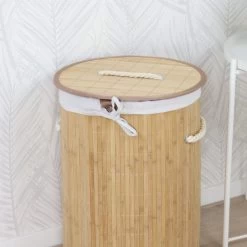 Het compacte model zorgt ervoor dat het in elke ruimte en hoek past. De wasmand is van bamboe gemaakt wat het stevigheid biedt.