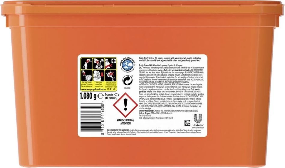 - Met Robijn Stralend Wit capsules geniet je van prachtig wit wasgoed
