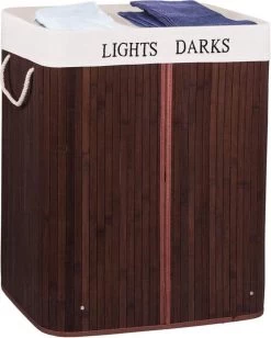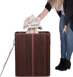 - Twee vakken – 100 liter inhoud: De katoenen binnenzak is verdeeld in twee vakken, zodat je de was gemakkelijk kan sorteren. Je ziet ook meteen of je voldoende witte of gekleurde was hebt om een was te laten draaien.