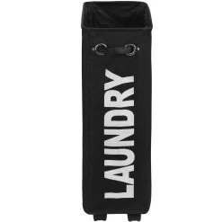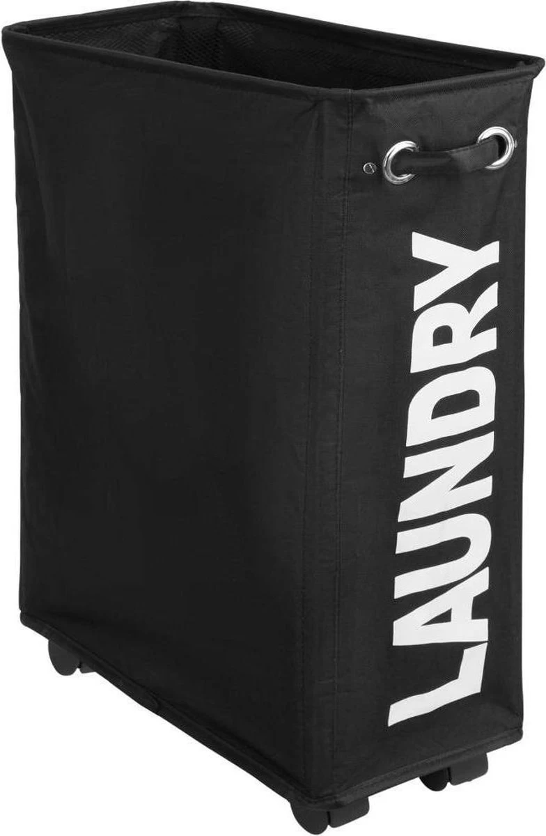 Deze compacte wasmand legt moderne accenten in uw badkamer. Het mooi gevormde design met de trendy tekst opwaardeert elke ruimte. Met haar smalle vorm kan ze ook in een kleine ruimte perfect gebruikt worden. Via de handgreep aan de voorzijde kan de lichtlopende mand met zijn vier wielen moeiteloos gesleept worden. Als ze niet gebruikt wordt, kan de korf tot een handig formaat samengeplooid worden. Tover ongebruikte niches en hoeken om tot een praktische opbergruimte met de stabiele wasmand van TecTake.