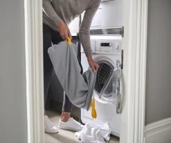 Het sorteren van wasgoed is nog nooit zo makkelijk geweest met deze slimme Tota wasmand van Joseph Joseph. Dankzij de praktische snufjes is de wasdag voortaan een minder grote klus. De wasmand is voorzien van een deksel waaronder je 2 verschillende stoffen tassen vind welke gebruikt kunnen worden om licht en donker wasgoed te kunnen scheiden. Iedere tas is voorzien van handvatten waardoor je hem makkelijk vanuit de wasmand naar de wasmachine kunt tillen. De lus aan de onderzijde helpt je vervolgens om de tas makkelijk te legen. Hierna kan de tas eenvoudig, zonder lussen of knopen, in de wasmand worden teruggeplaatst dankzij de zelf lokaliserende rand zodat hij perfect op zijn plaats valt. Het stijlvolle ontwerp maakt deze wasmand ideaal om te combineren met andere stijlen in huis waardoor hij niet misstaat in zowel de badkamer, slaapkamer of het washok. Deze wasmand heeft een inhoud van 60 Liter en is ook verkrijgbaar in een 90 Liter variant. Hij wordt plat geleverd inclusief montage instructies.