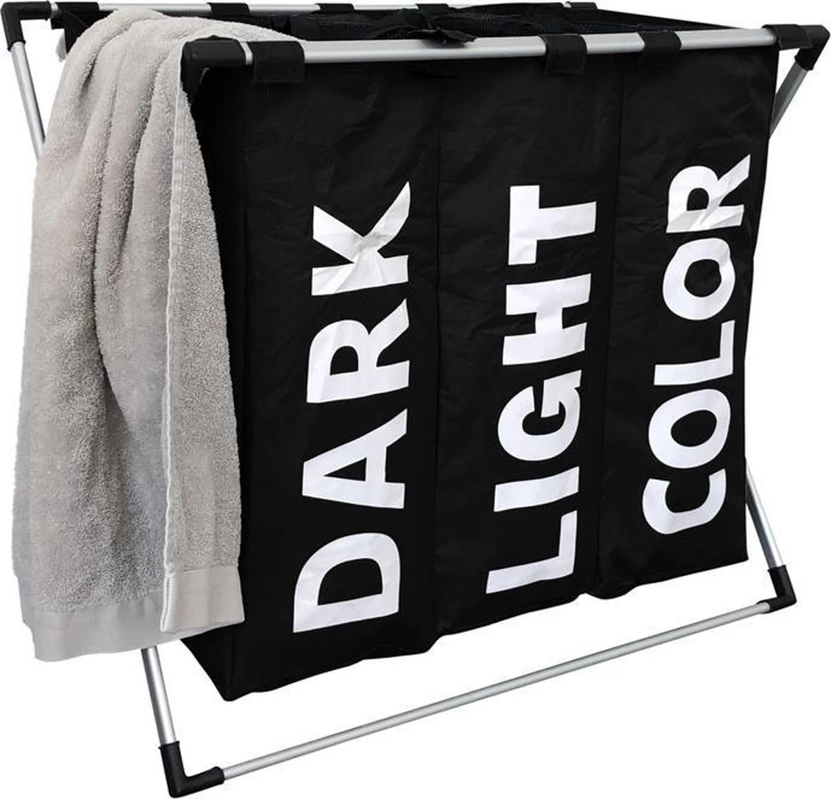 De wasmand is ingedeeld in 3 delen, waarvan één voor donkere was, één voor witte was en één voor gekleurde/bonte was. Doordat de was al wordt gesorteerd als deze in de wasmand beland, hoef je dit niet meer te doen als je gaat wassen. Dat scheelt een hoop tijd en moeite. Daarnaast heb je zo meer inzicht in wanneer een bepaalde kleur gewassen moet worden en zet je geen halflege machine aan.
