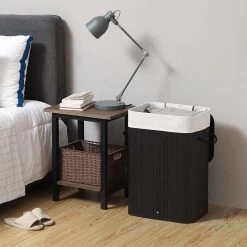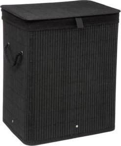 Wasmand Met Deksel 60 l – 40x30x50cm – Bamboe – Zwart