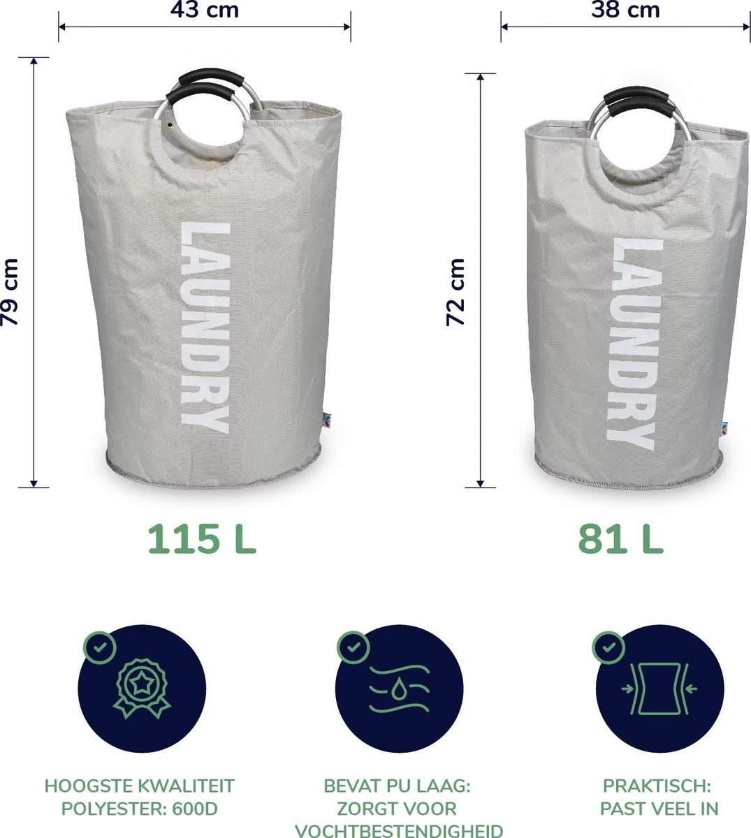 Wil je een mooie wasmand kopen met een goede prijs-kwaliteitverhouding? Dan is deze Laundry waszak de beste keuze! Dankzij het stevige, duurzame polyester gaat de wasmand lang mee. De hengsels zijn gemaakt van aluminium en hebben een zachte coating. Hiermee kun je de wasmand gemakkelijk en comfortabel dragen, ook als er veel was in zit.